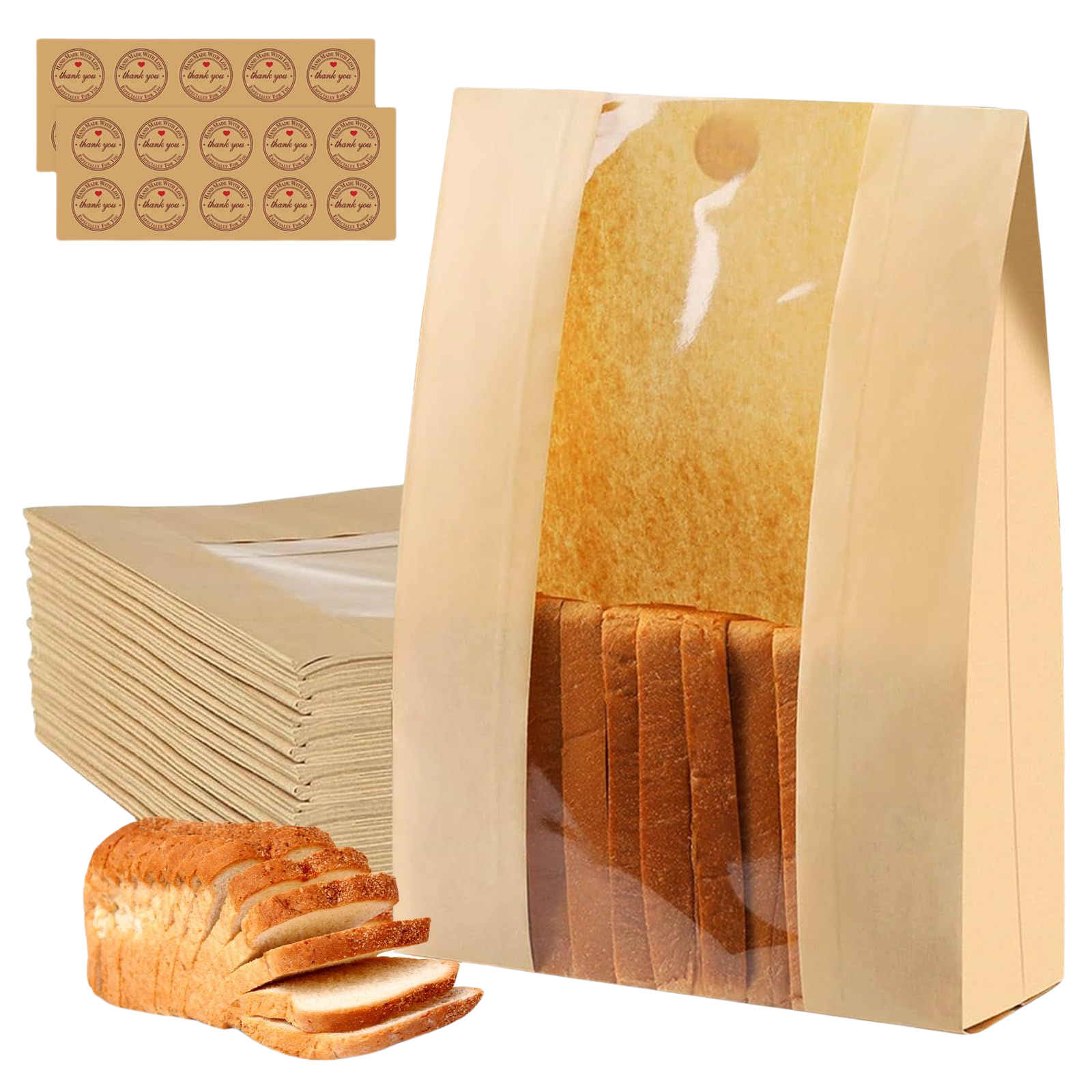 100 Pack Kraft Bakery Paper Bread Bags with 100 Pcs Stickers Fold Top
